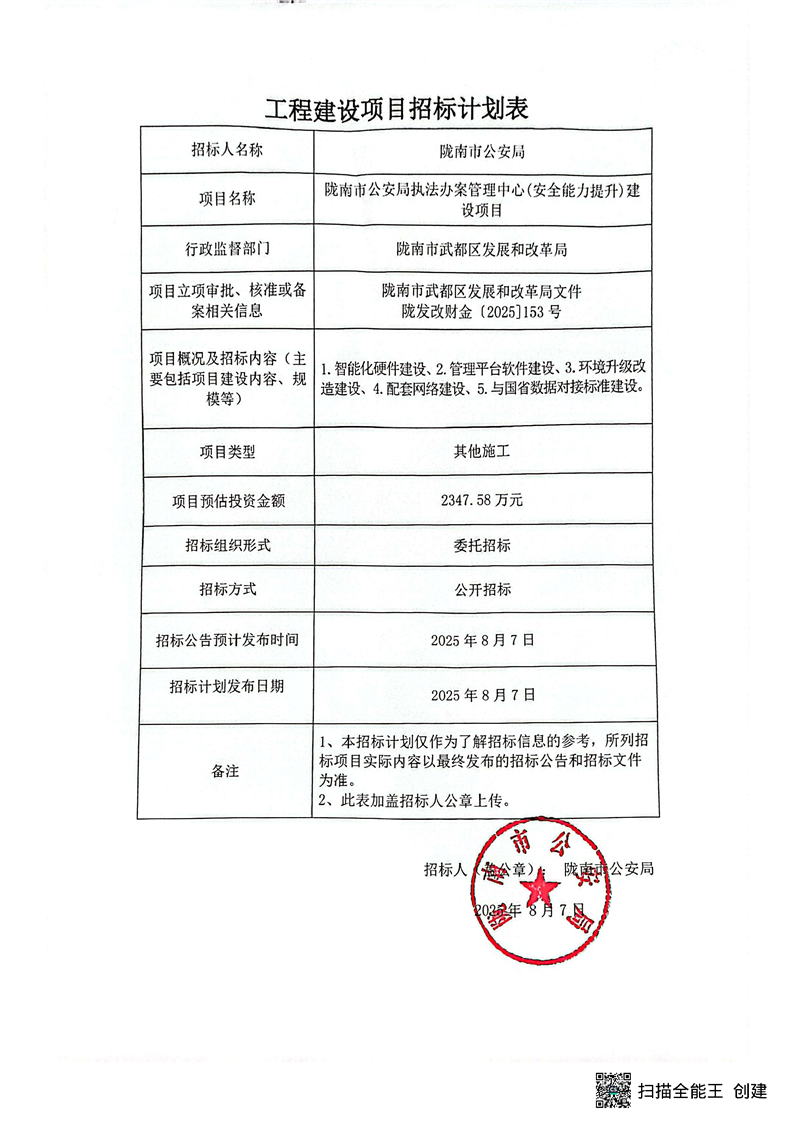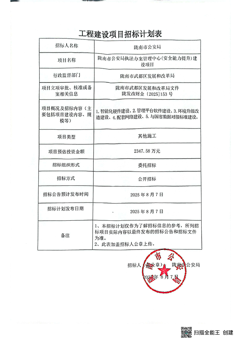 隴南市公安局執(zhí)法辦案管理中心(安全能力提升)建設(shè)項目