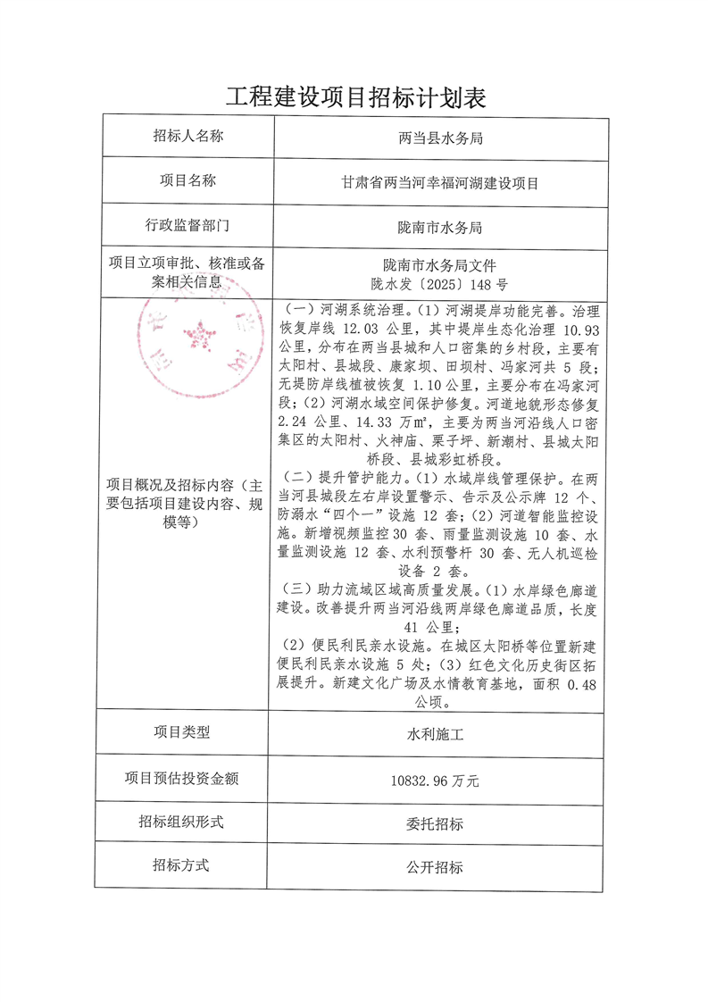 甘肅省兩當(dāng)河幸福河湖建設(shè)項目