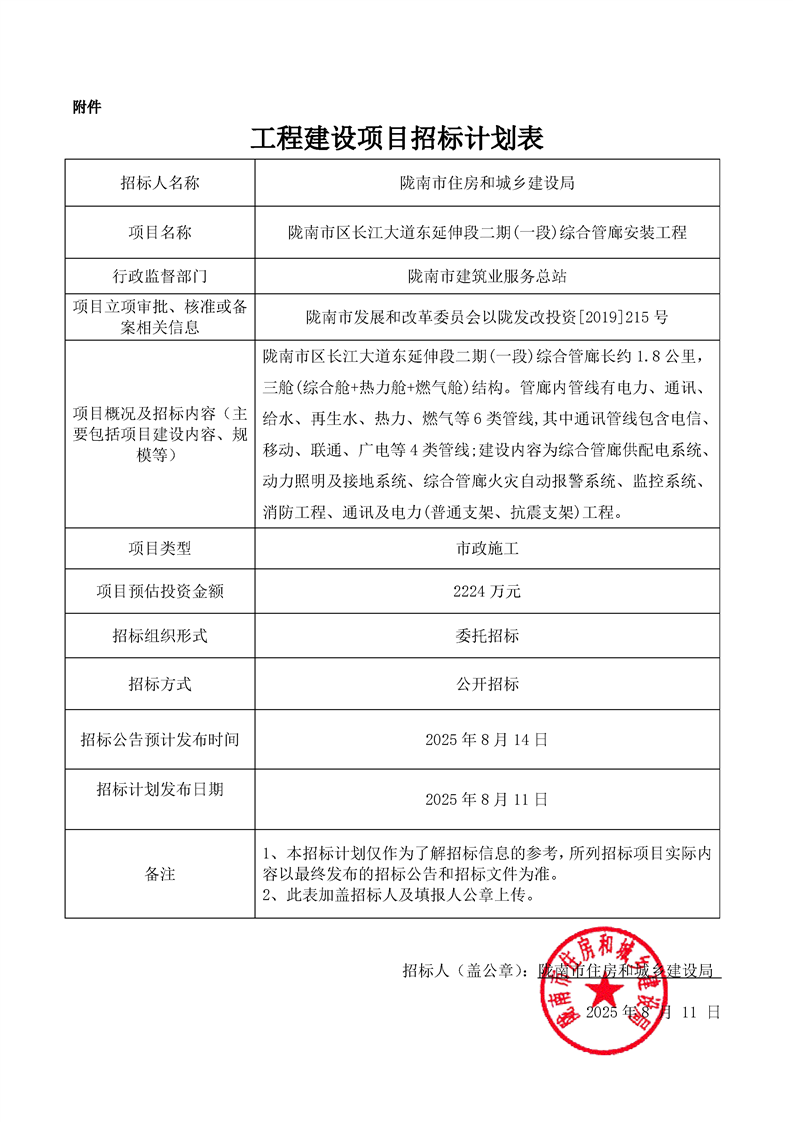附件:隴南市區(qū)長(zhǎng)江大道東延伸段二期(一段)綜合管廊安裝工程工程建設(shè)項(xiàng)目招標(biāo)計(jì)劃表.pdf