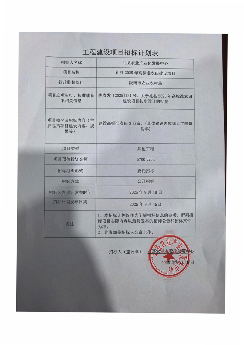 禮縣2025年高標(biāo)準(zhǔn)農(nóng)田建設(shè)項(xiàng)目
