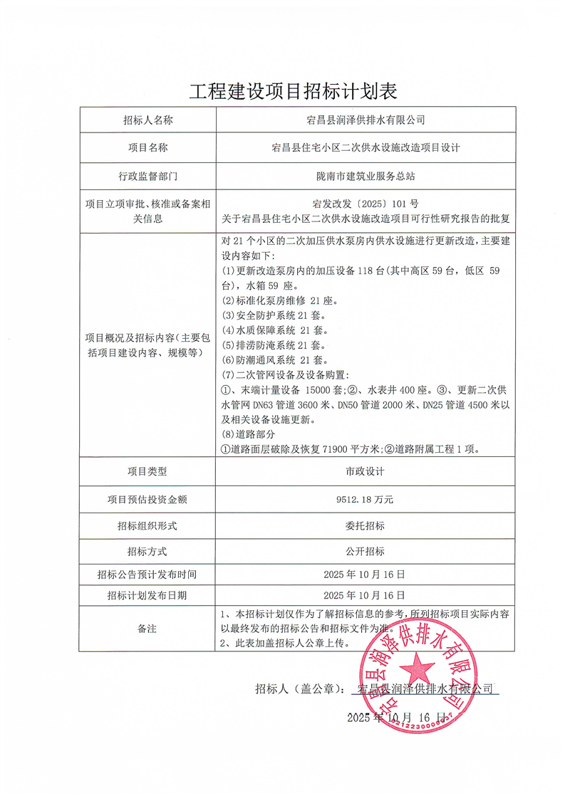 宕昌縣住宅小區(qū)二次供水設(shè)施改造項目設(shè)計