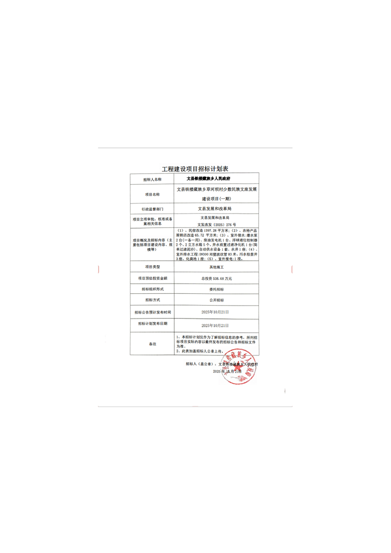 文縣鐵樓藏族鄉(xiāng)草河壩村少數(shù)民族文旅發(fā)展建設項目(一期)