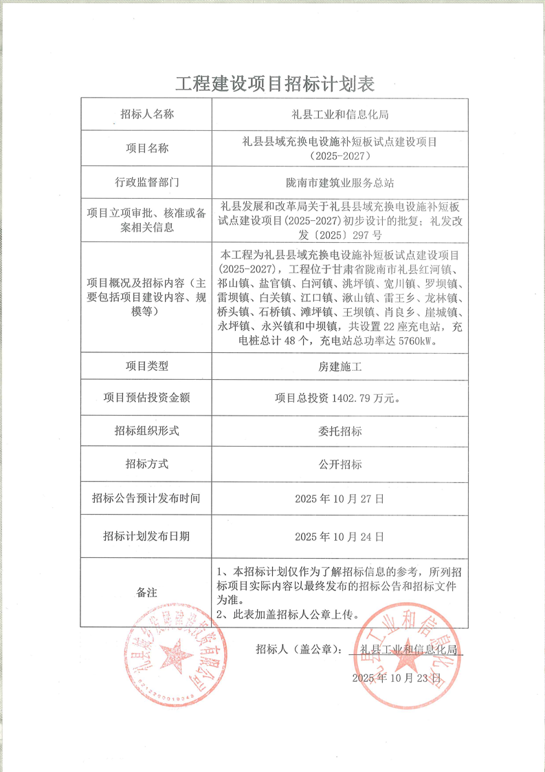 禮縣縣域充換電設(shè)施補短板試點建設(shè)項目(2025-2027)