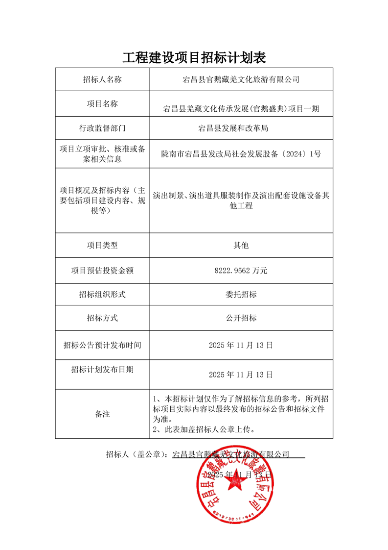 宕昌縣羌藏文化傳承發(fā)展(官鵝盛典)項目一期