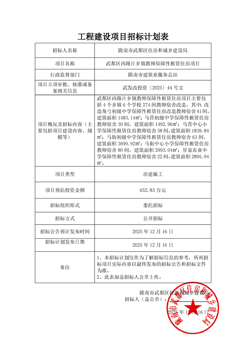 武都區(qū)西路片鄉(xiāng)鎮(zhèn)教師保障性租賃住房項(xiàng)目