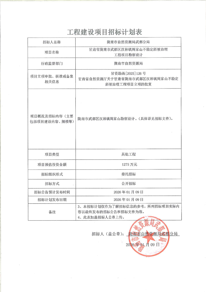 隴南市武都區(qū)漢林鎮(zhèn)周家山不穩(wěn)定斜坡治理工程勘察設計