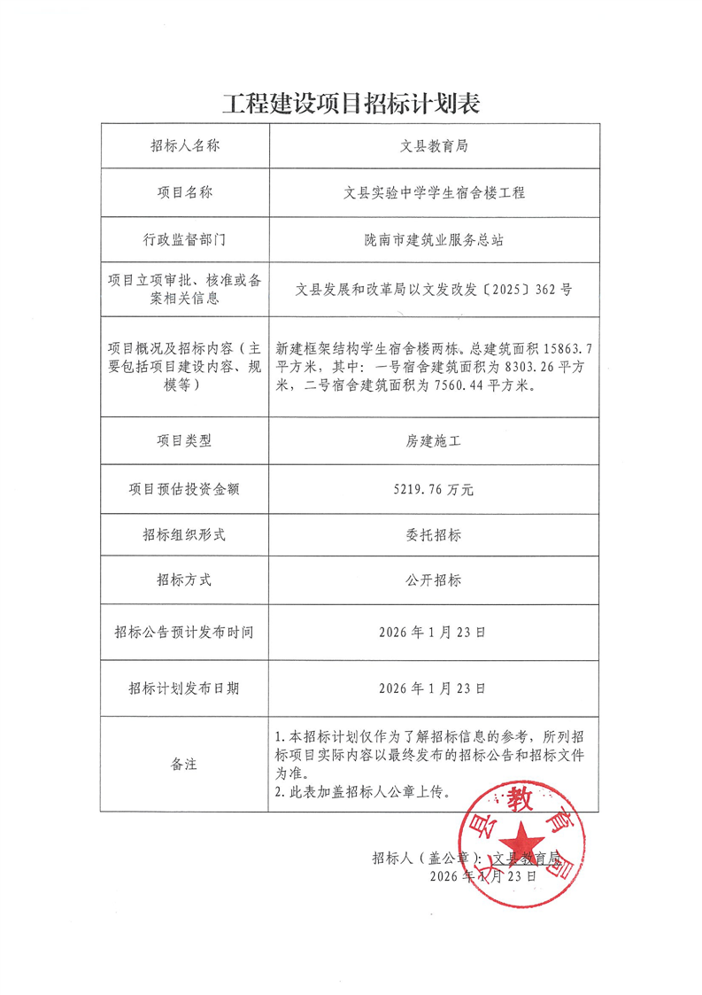 文縣實驗中學(xué)學(xué)生宿舍樓工程