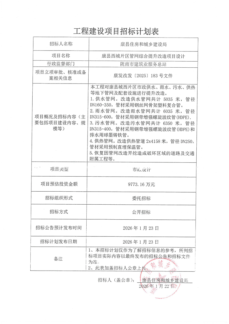 康縣西城片區(qū)管網(wǎng)綜合提升改造項目設計