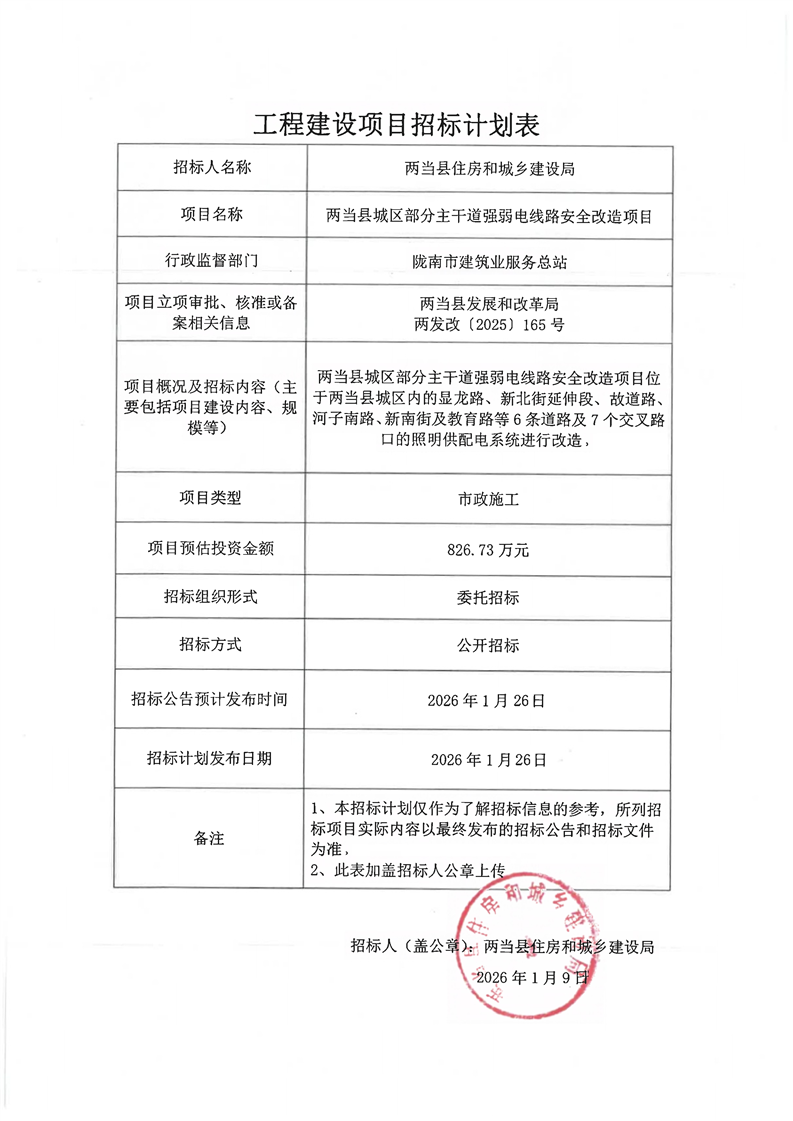 兩當(dāng)縣城區(qū)部分主干道強(qiáng)弱電線(xiàn)路安全改造項(xiàng)目