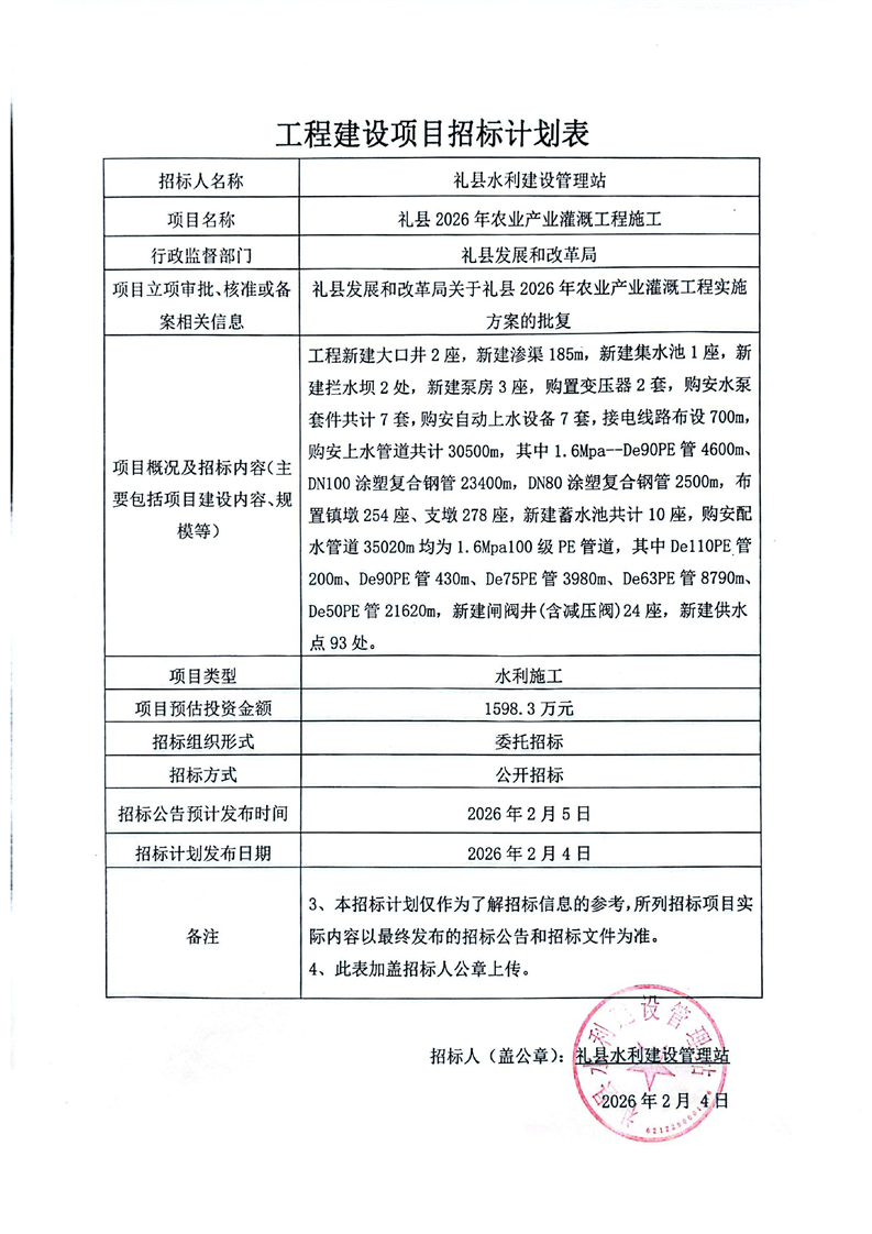 禮縣2026年農(nóng)業(yè)產(chǎn)業(yè)灌溉工程施工