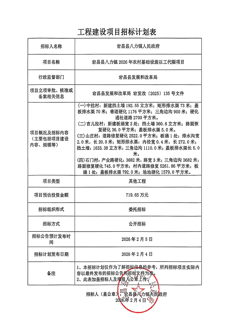 宕昌縣八力鎮(zhèn)2026年農(nóng)村基礎(chǔ)設(shè)施以工代賑項(xiàng)目