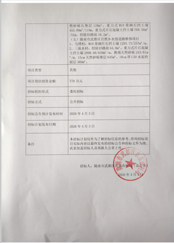 隴南市武都區(qū)五馬琵琶楓相三倉月照基礎(chǔ)設(shè)施補(bǔ)短板建設(shè)項(xiàng)目