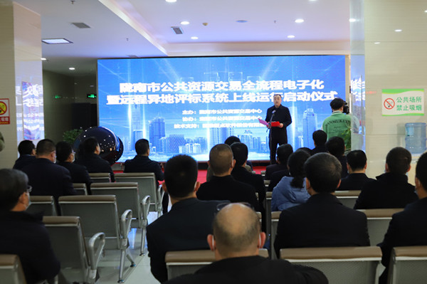 啟動儀式上,中心黨組書記、主任張巍做了致辭,并向參會嘉賓播放了市公共資源交易中心工作匯報專題視頻。隨后大家通過大屏幕觀看了隴南-定西兩地評委實時遠程異地評標情景畫面;兩地專家準備就緒后,與會領導發(fā)送系統(tǒng)啟動指令,共同見證了隴南市公共資源交易全流程電子化暨遠程異地評標系統(tǒng)上線運行。