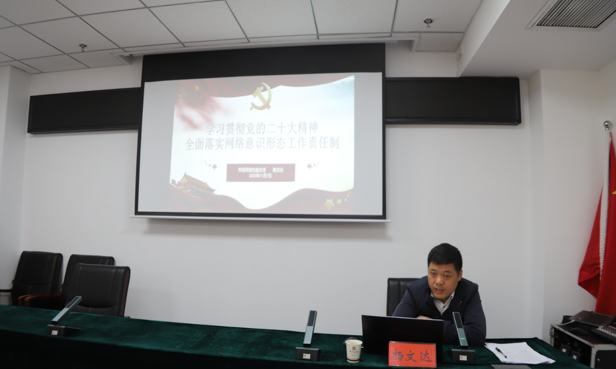11月7日,楊文達(dá)同志以“學(xué)習(xí)貫徹黨的二十大精神,全面落實網(wǎng)絡(luò)意識形態(tài)工作責(zé)任制”為題作了專題培訓(xùn)